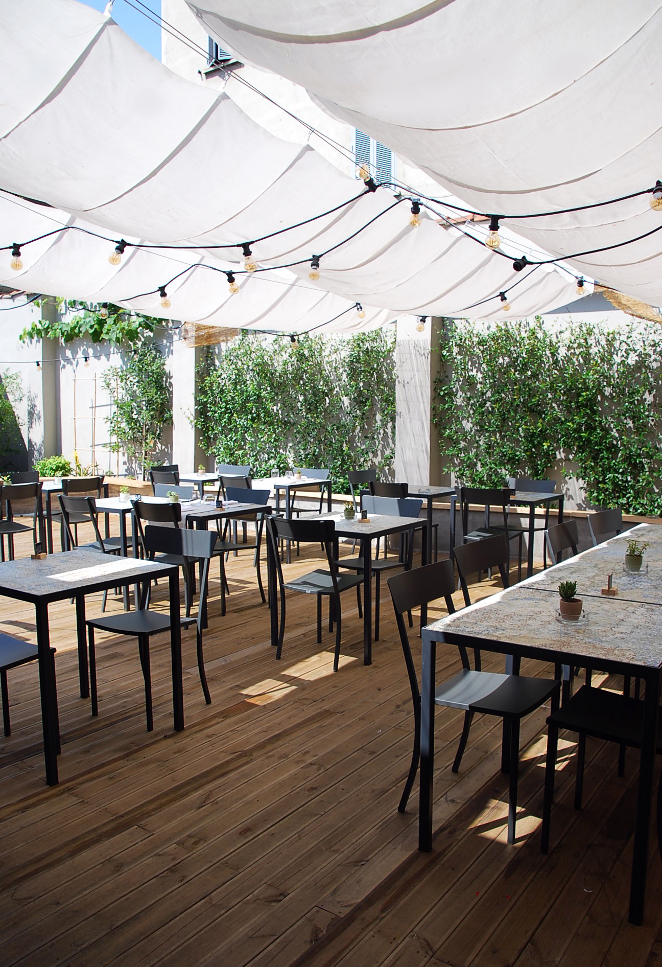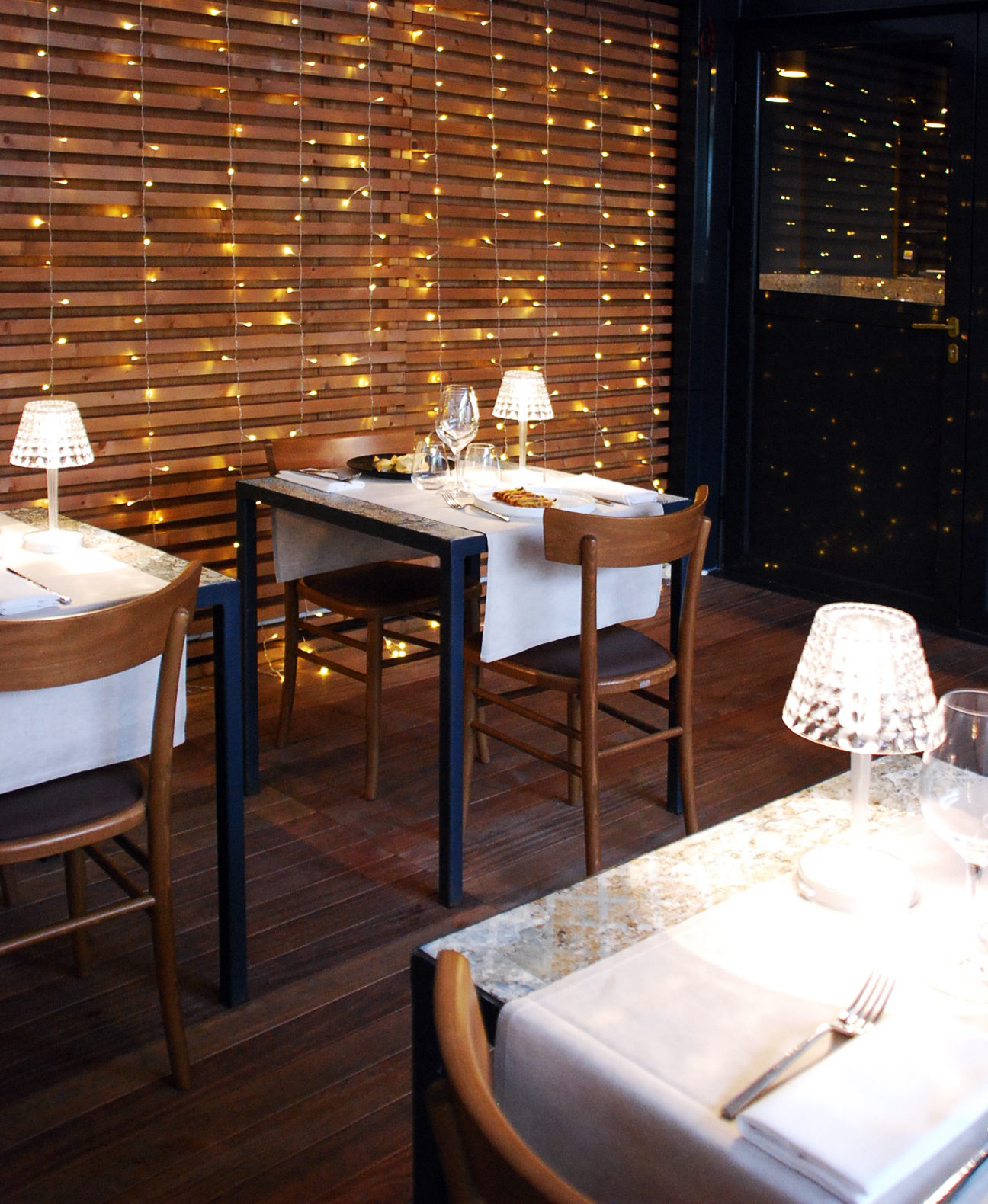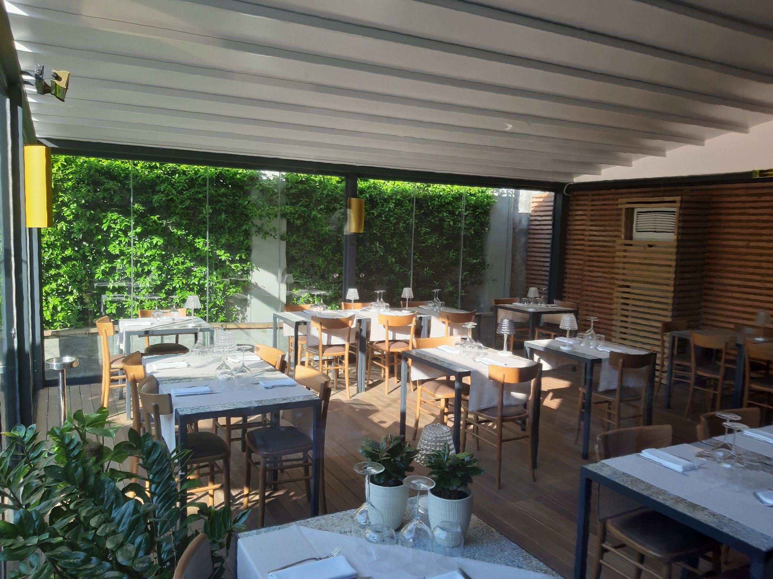 Piacevole il giardino dove prendere un aperitivo o cenare durante la primavera-estate, capace di ricreare un angolo green a Milano dove rigenerarsi. Anche lo stile del locale è Particolare, grazie agli architetti Rodolfo Sormani, Alessandro Tonassi e Matteo Ranghetti che si sono ispirati all’eleganza degli anni Cinquanta e Sessanta. Tutto è progettato e disegnato nei minimi dettagli. Osservando le prospettive specchiate, le textures a rombi, gli accostamenti cromatici, le linee degli arredi, le lampade dorate, gli avventori più appassionati potranno divertirsi a cogliere le piccole citazioni dei grandi maestri dell’architettura del secolo scorso. Fulcro del progetto è stata la scelta dei rivestimenti, affascinante riproduzione in gres porcellanato di un tappeto usurato, il quale crea un ambiente caldo e famigliare.