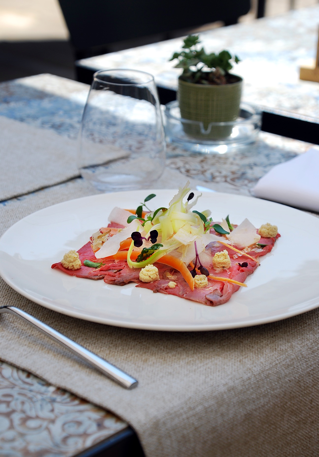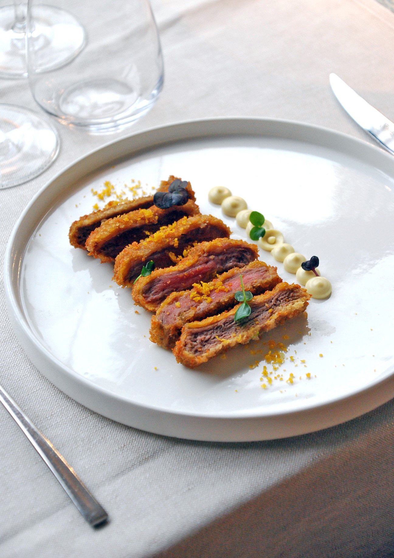 Ampia la scelta del menù, che cambia periodicamente durante l’anno per rispondere alla stagionalità delle materie prime, con un’attenta selezione di piccoli produttori e una forte attenzione alle filiere italiane ed etiche. Anche la carta dei vini è una piacevole sorpresa, grazie al maître e sommelier Luca Beretta, che ha scelto oltre 200 etichette, molte delle quali fuori dai soliti noti. Ottima anche l’incursione dai cugini d’oltralpe, che dà l’opportunità di fare qualche giro interessante tra i terroir più noti della Francia, anche a bicchiere.